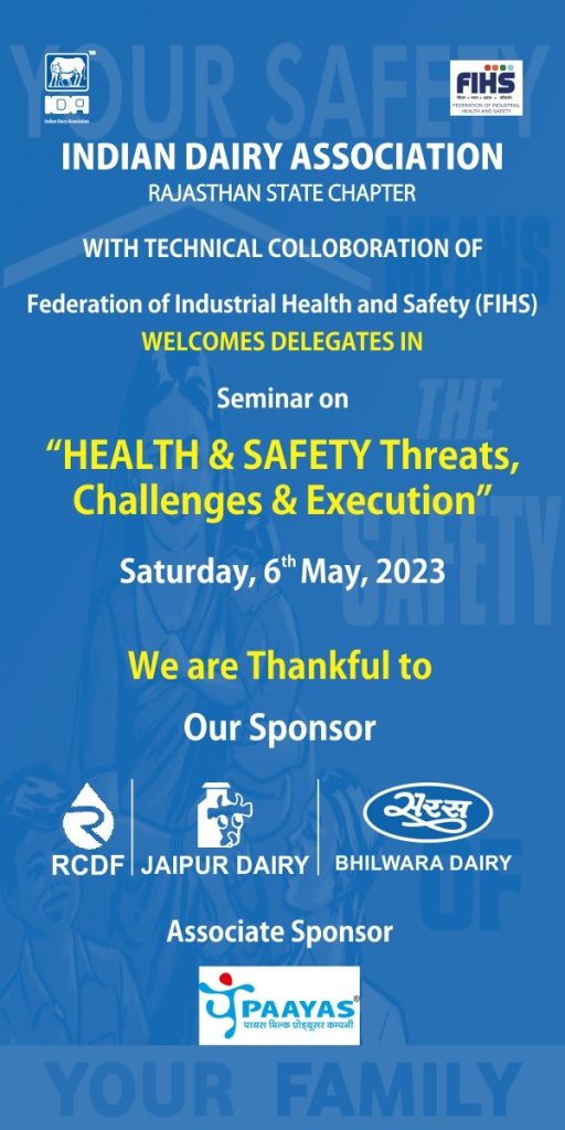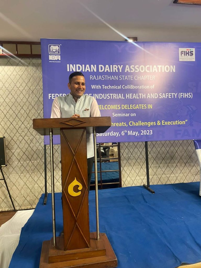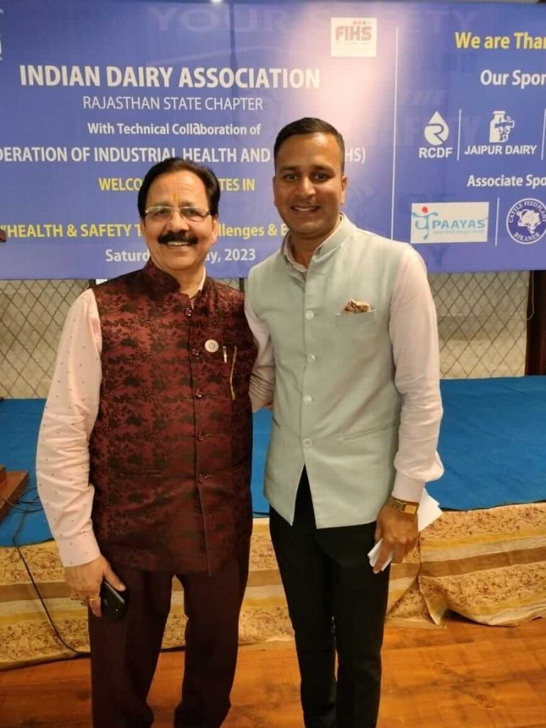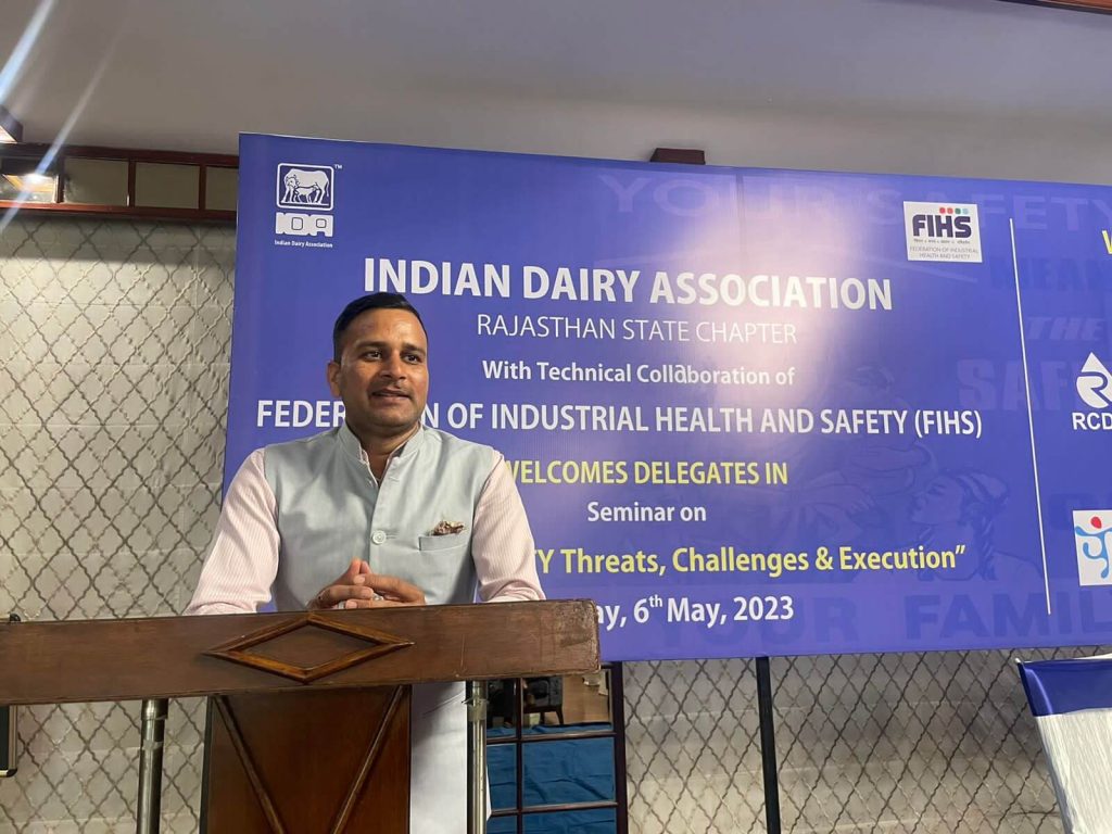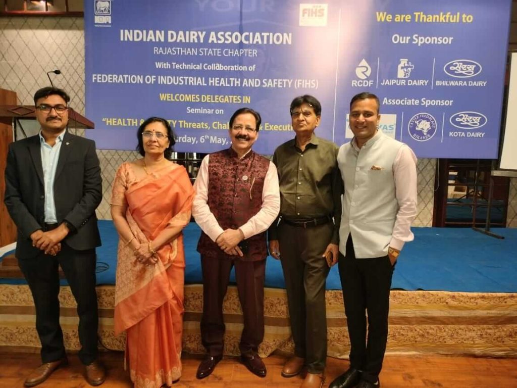 6 मई सेकंड इवेंट इंडियन डेयरी एसोसिएशन इंडिया के साथ चौथा इवेंट होने वाला है राजस्थान कॉमर्स एंड चेंबर ऑफ इंडस्ट्रीज कैसा एमओयू के बाद कल की कॉन्फ़्रेन्स में मंच संचालन करते हुए फ़ेडरेशन ऑफ इंडस्ट्रीयल हेल्थ एंड सेफ़्टी (FIHS) के फाउंडर सीईओ सीईओ ,नेशनल एडवाइजर व ईएआर के अध्यक्ष एन. के. जैन साथ में मंच पर हैं डिज़ास्टर मैनैजमेंट एक्स्पर्ट ब्रिग. कमलेश, राजस्थान चैम्बर के अध्यक्ष डा. के. एल. जैन, मुख्य अतिथि राजस्थान पुलिस के आई॰जी॰ राजस्थान डिजास्टर मैनेजमेंट के प्रमुख श्री विकास कुमार व FIHS के राष्ट्रीय अध्यक्ष डा. ए. के. सिंह जी है